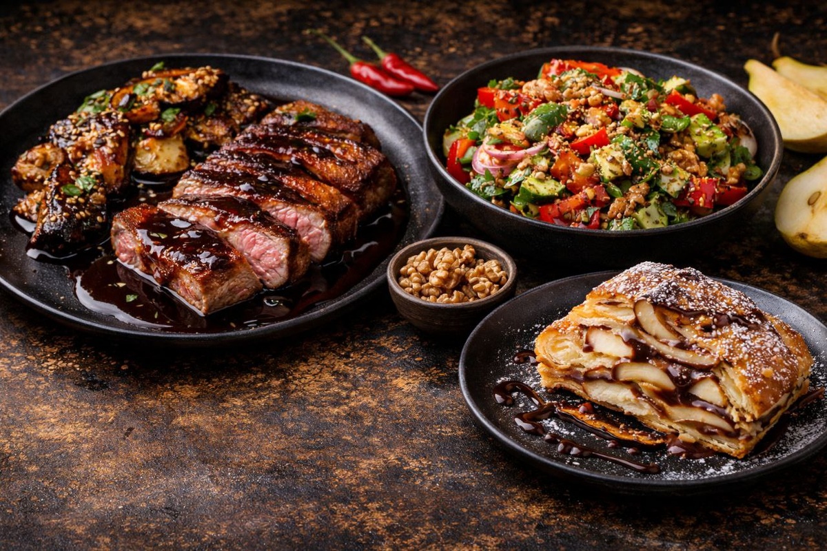 17:30–19:30 — стейк из говядины с овощами, салат с томатами и молодым сыром — 9 069 ₽ за двоих