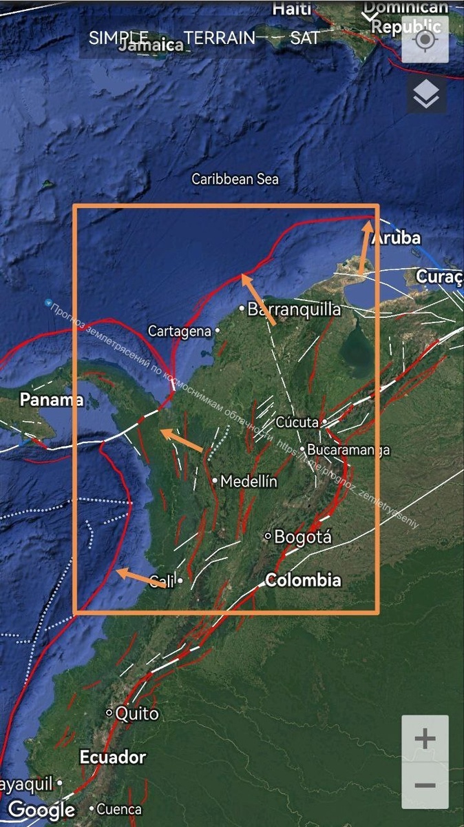 На Карибской плите в зоне риска М6+ Колумбия и север в районе Ямайки-Гаити