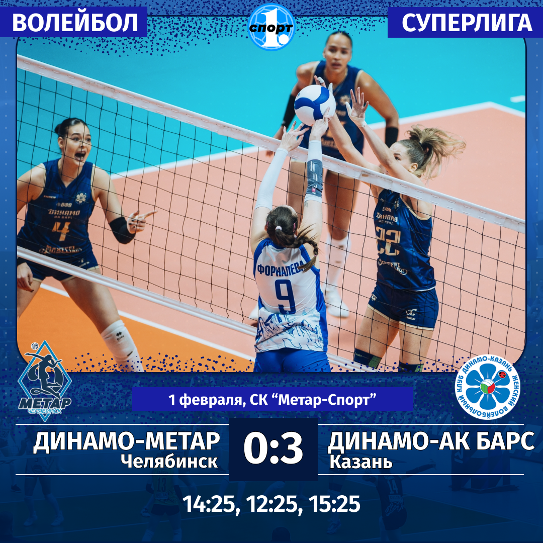 Женская волейбольная команда «Динамо-Метар» потерпела поражение от лидера Суперлиги. Сегодня, 1 февраля, челябинки уступили с «сухим» счетом казанскому «Динамо-Ак Барсу». Хозяйки площадки не смогли преподнести подарок на День рождения гендиректору клуба Виталию Носову, которому сегодня исполнилось 58 лет, сообщает корреспондент ИА «Первое областное». Сегодня, 1 февраля, 58 лет исполнилось гендиректору ВК «Динамо-Метар» Виталию Носову. Каким может быть лучший подарок спортивному руководителю вы догадываетесь. Речь, конечно же, о победе. Разумеется, челябинские волейболистки хотели сделать приятное своему боссу. Но как это сделать, если тебе противостоит сильнейший клуб страны? «Динамо-Ак Барс» в текущем чемпионате выступает блестяще. К поединку в Челябинске суперклуб из Татарстана подошел с серией из 11 побед кряду. В последний раз он уступил в декабре прошлого года саратовскому «Протону» (2:3), причем на своей площадке. Второе поражение в Суперлиге «Динамо-Ак Барс» потерпел в Екатеринб