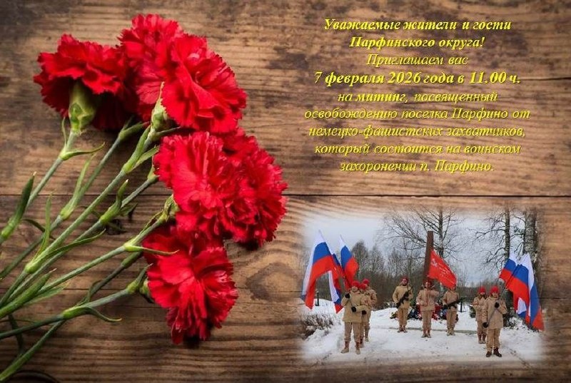Приглашаем вас на митинг, посвященный годовщине освобождения поселка Парфино от немецко-фашистских захватчиков.