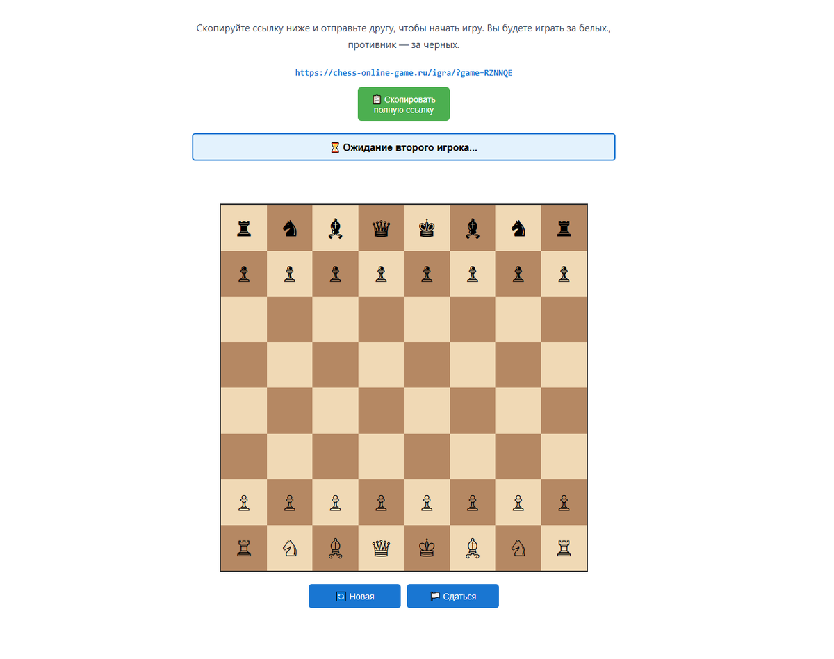 Как только друг присоединится, партия начнется. Первый ход за белыми (обычно это создатель игры).