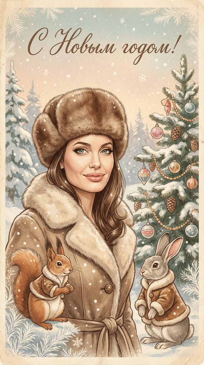 Как создать Советскую сказочную новогоднюю открытку с помощью нейросети 2026 - Готовый промт.