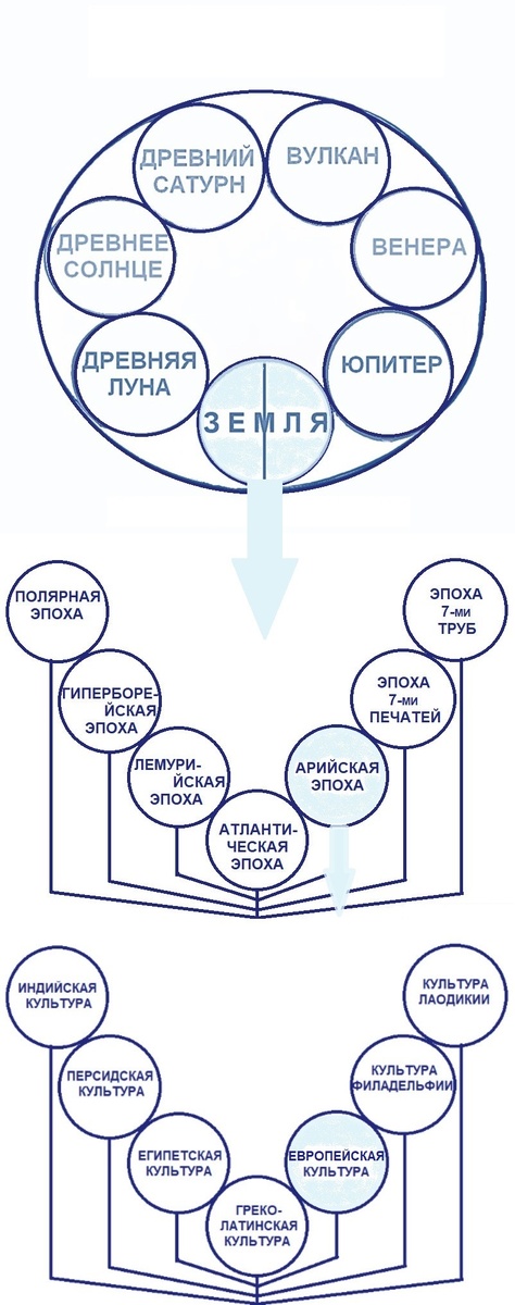 Вы знаете, что мы идем назад через Атлантическое время в древнее Лемурийское время. Здесь находим мы четырехчленного, нам позволено сказать, полуживотного человека, который хотя уже состоит из четверичности - физического тела, эфирного тела, астрального тела и задатка к Я, который, однако, был еще не в состоянии, также только в ничтожной мере, работать над своими тремя оболочками. Ибо сила, которая необходима человеку, чтобы в обозначенном смысле работать рад своими оболочками, должна была сперва войти в этого носителя собственной природы человека. То, что вы сегодня обозначаете как ваше Я, что облачает вашу Душу, ваша глубочайшая природа, которая содержит нечто из того, что преобразовано от трех оболочек человека, этого не было тогда еще здесь, это еще желало сперва войти в развитие человека. Я было еще в полом пространстве, чтобы принять то, что сегодня есть глубочайшее Внутреннее, что именуют бессмертной частью человека, которая проходит через инкарнации, что вместе с Землей может перейти в другое планетарное бытие. Оно погрузило себя только тогда в человеческую оболочку. Оно было прежде в лоне Божества, образовывало некую часть божественной природы.