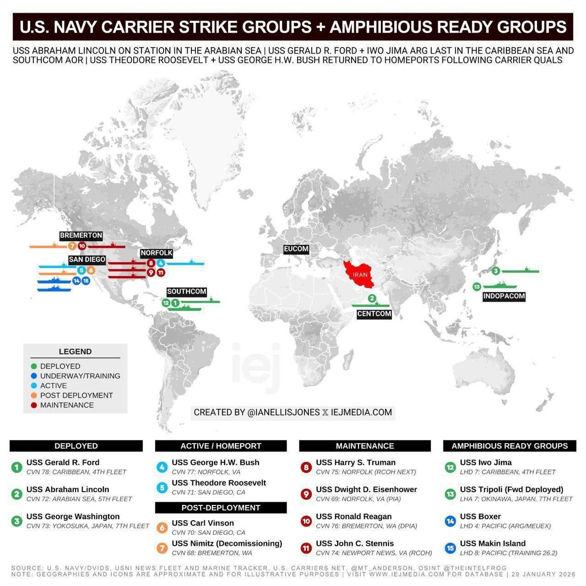 ❗️🗺Согласно спутниковым снимкам, сделанным несколько часов назад спутником, Sentinel-2, авианосец CVN 72 Abraham Lincoln покинул Оманское