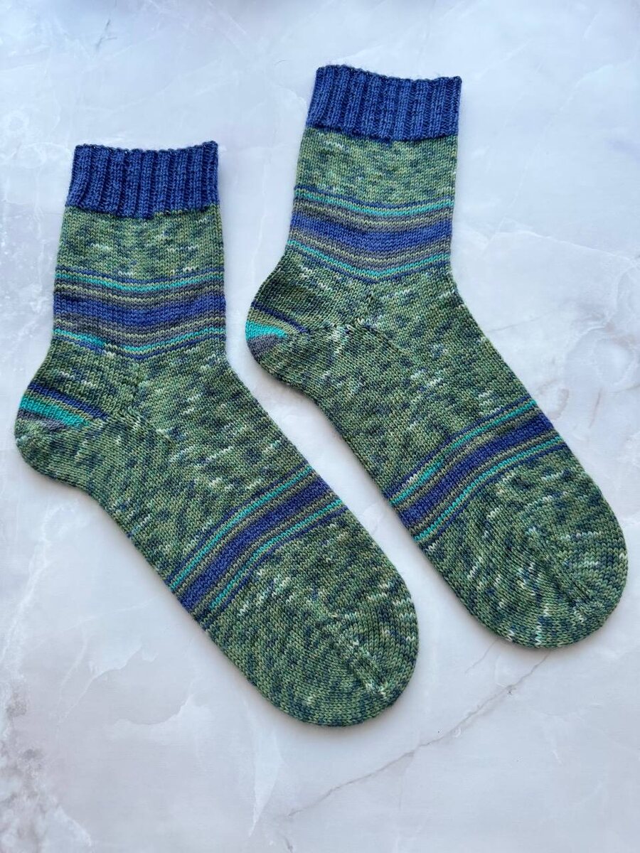 ❤️🔥 Размер 45. Спицы 2.25 - набирала 72 петли перекрестным набором. Резинка 2*2 Пятка-бумеранг с клином (добавляла по 5 петель с каждой стороны) Мысок ленточный.