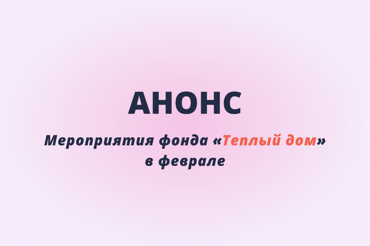 Тёплые встречи 13 февраля, 18:30 Танцедвигательная встреча для мам Про тело, выдох и возвращение к себе 📍 ул. Оружейника Фёдорова, 2 15 февраля, 13:00 Встреча для родителей и детей Тема: Выживание в лесу Ведут друзья из ПСО «Отклик» 📍 ул. Оружейника Фёдорова, 2 21 февраля, 17:00 Открытая встреча для семей с детьми Отмечаем Масленицу — зовём всех! 📍ул. Оружейника Фёдорова, 2 25 февраля, 19:00 Встреча для тех, кто хочет стать волонтёром фонда Расскажем, как устроено волонтёрство в фонде, какие бывают форматы участия и с чего можно начать 📍ул. Оружейника Фёдорова, 2 28 февраля Массажная вечеринка для подопечных семей Про расслабление и бережность к себе 📍 ул. Оружейника Фёдорова, 2 Запись на Тёплые встречи — в комментариях к посту. Отдельно про мастер-класс 15 февраля, 14:30 Платный мастер-класс по изготовлению будок для собак из приютов в нашей столярной мастерской. МК проводим совместно с волонтёрским движением «Погуляй собаку». Это возможность провести время вместе с семьё