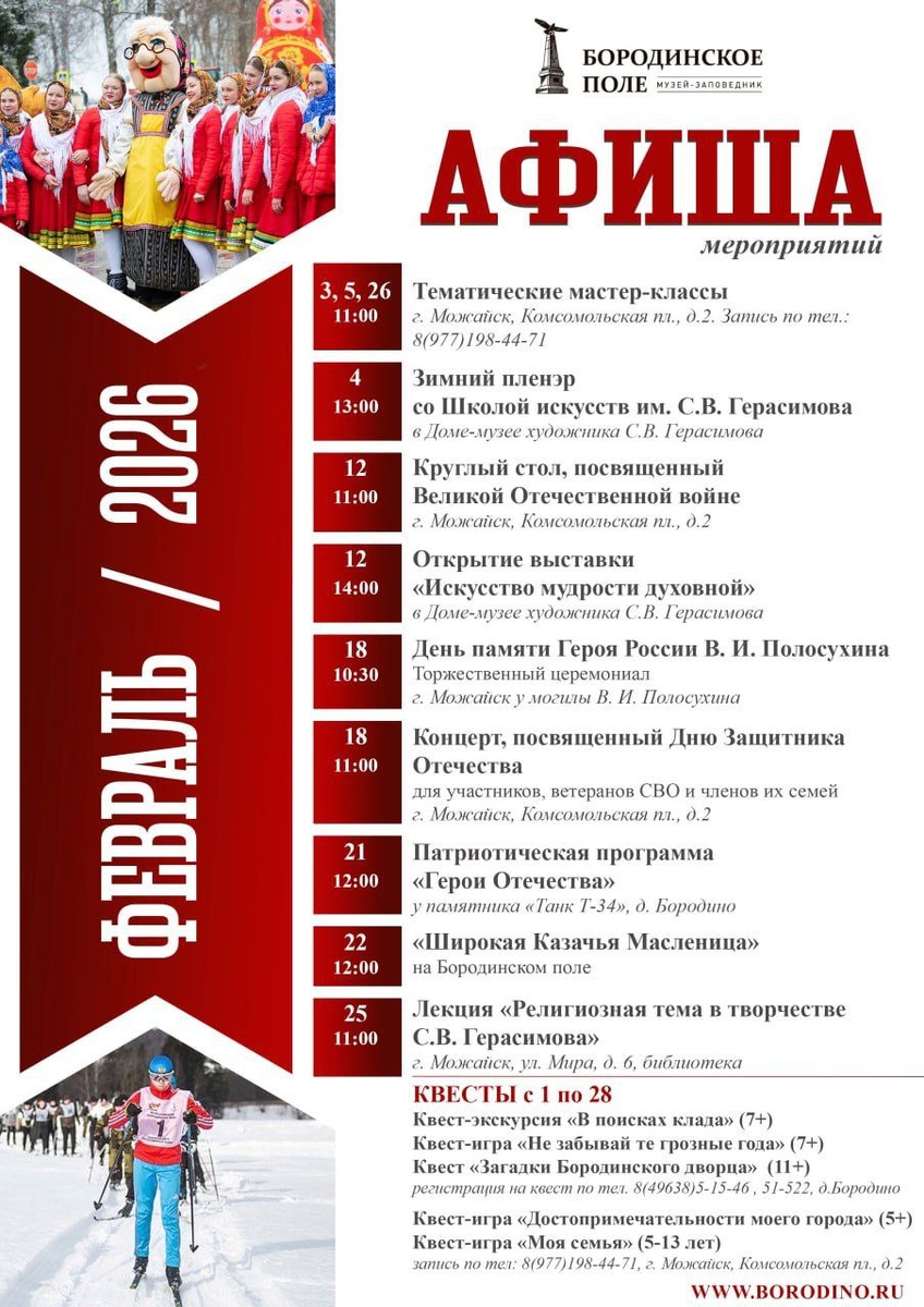 Афиша мероприятий Музея-заповедника «Бородинское поле» на ФЕВРАЛЬ