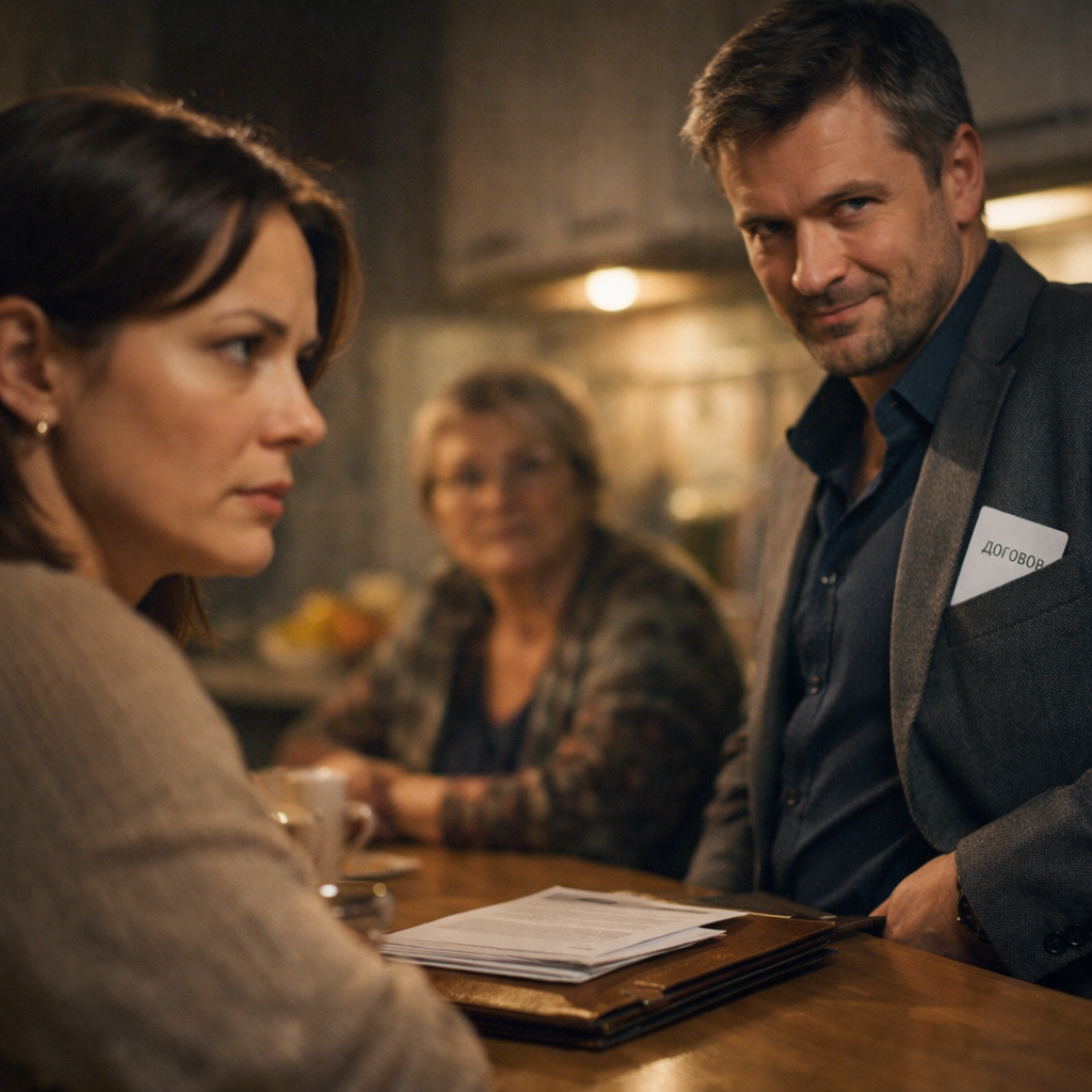 Олег вздохнул, достал из кармана сложенный документ и положил на стол. Движение было уверенным, как будто он уже сто раз это делал. На листе действительно была печать, и сверху крупно: «ДОГОВОР…» Дальше мелко, но я успела увидеть слово «доля».