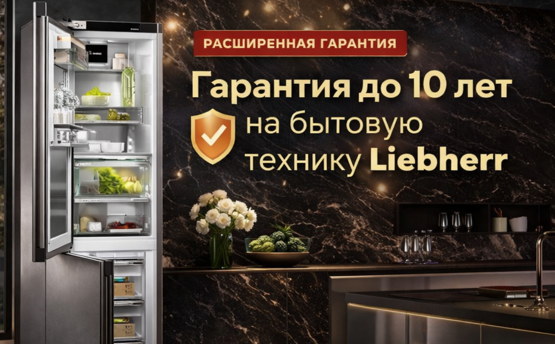 При выборе бытовой техники мы часто концентрируемся на дизайне, объёме и технологиях, а гарантия остаётся где-то на втором плане. Между тем именно она во многом определяет, насколько покупка окажется удачной в долгосрочной перспективе. Чем дольше гарантийный срок, тем меньше рисков и дополнительных расходов в будущем - особенно когда речь идёт о технике, которая работает без перерыва годами. В 2026 году у покупателей холодильной и морозильной техники Liebherr есть возможность получить расширенную фирменную гарантию - на 5 или даже на 10 лет. Всё зависит от выбранной модели. Рассказываем, как устроена акция и на какие устройства она распространяется. 📅 Срок действия акции: с 1 января по 31 декабря 2026 года С 1 января по 31 декабря 2026 года при покупке любого холодильника или морозильника Liebherr действует расширенная гарантийная программа. В неё входит: 📌 Итого - 5 лет (60 месяцев) официальной гарантии. Важно, что в этой части акции участвует вся линейка без исключений: встраиваемы