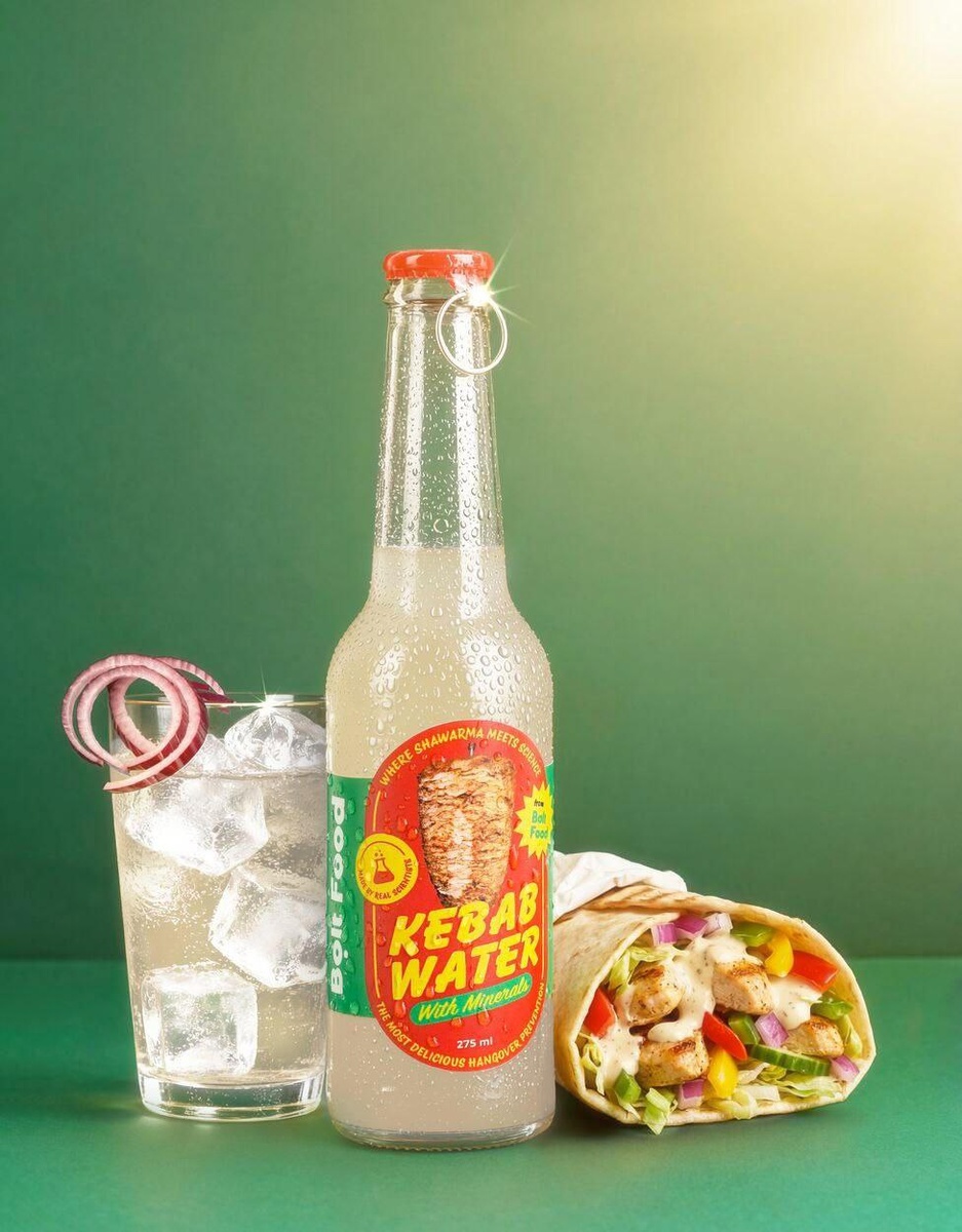 Сервис доставки выпустил воду со вкусом ШАУРМЫ. Bolt представил лучший антипохмельный напиток, который похож на кебаб по вкусу. Помимо ароматизаторов внутри полноценный спасительный круг от испорченного утра: калий, магний и цинк.