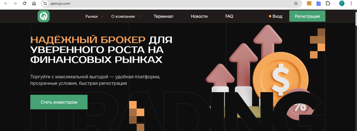 На обзоре брокер Qemcjo.com (Qem-cjo.pro). Почему им нельзя доверять:. Главный аргумент, который использует этот брокер для привлечения внимания, — это обещание высокой доходности. Речь идет о ежемесячной прибыли от 15% до 45% на вложенный капитал. Цифры, согласитесь,впечатляющие, особенно в условиях традиционно низких банковских ставок. Однако именно здесь и кроется первый серьезный повод для сомнений. Стабильная доходность на таком уровне в финансовом мире практически не встречается и сопряжена с экстремальными рисками, которые редко афишируются. Обещание гарантированых высоких процентов является классическим признаком не инвестиционной, а лживой схемы работы. При ближайшем рассмотрении в открытых источниках и на специализированных форумах обнаруживается, что проект имеет крайне негативную репутацию. Пользователи, которые уже имели с ним дело, оставляют многочисленные предупреждающие отзывы. Основные жалобы связаны с невозможностью вывести свои средства обратно. После внесения денег