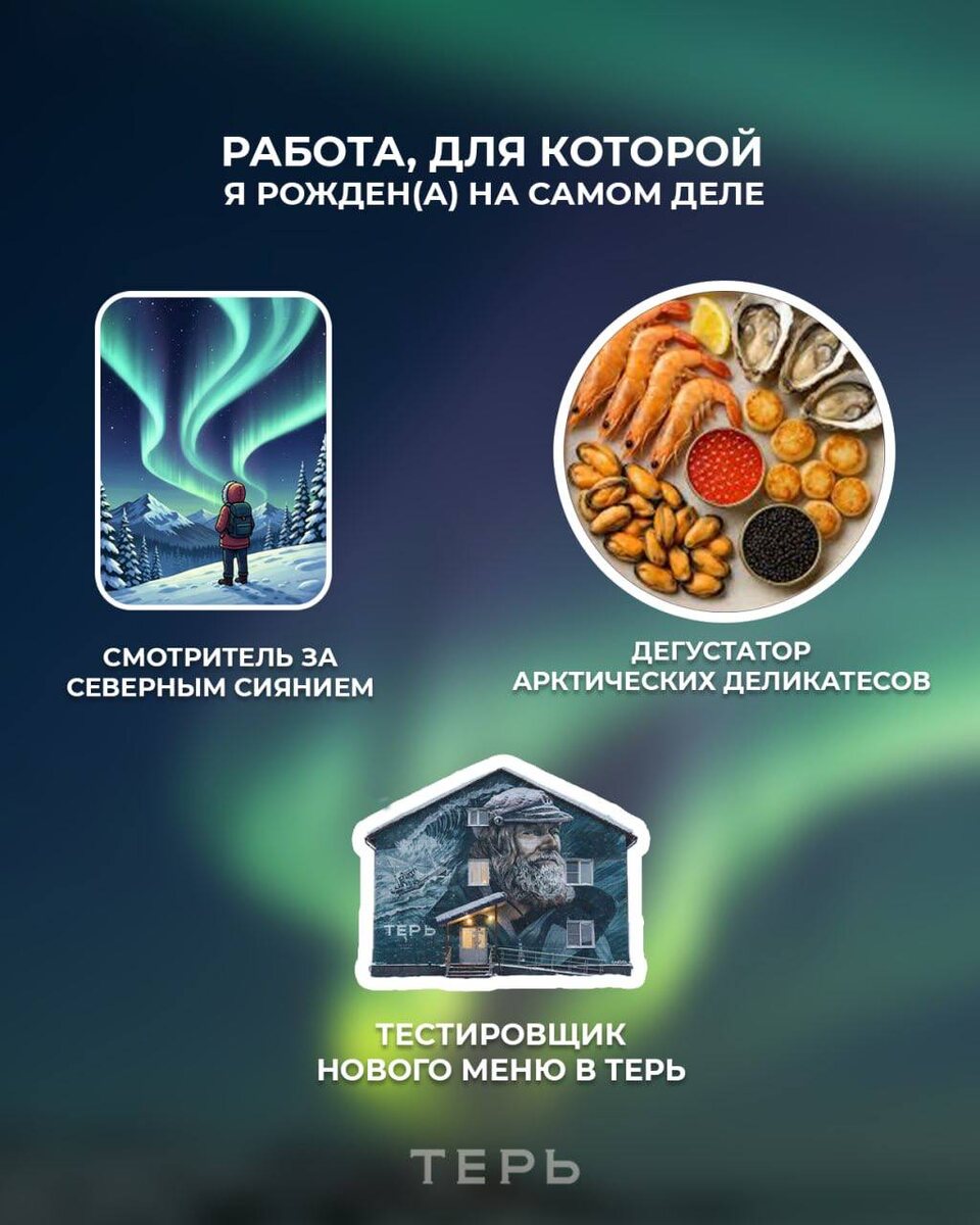 ? Мы тоже видели — и решили поучаствовать. Но с северной поправкой ❄️ У нас вы можете скинуть свои привычные роли и примерить новые, приносящие только удовольствие. Приезжайте и меняйте профессию в «Терь»😍