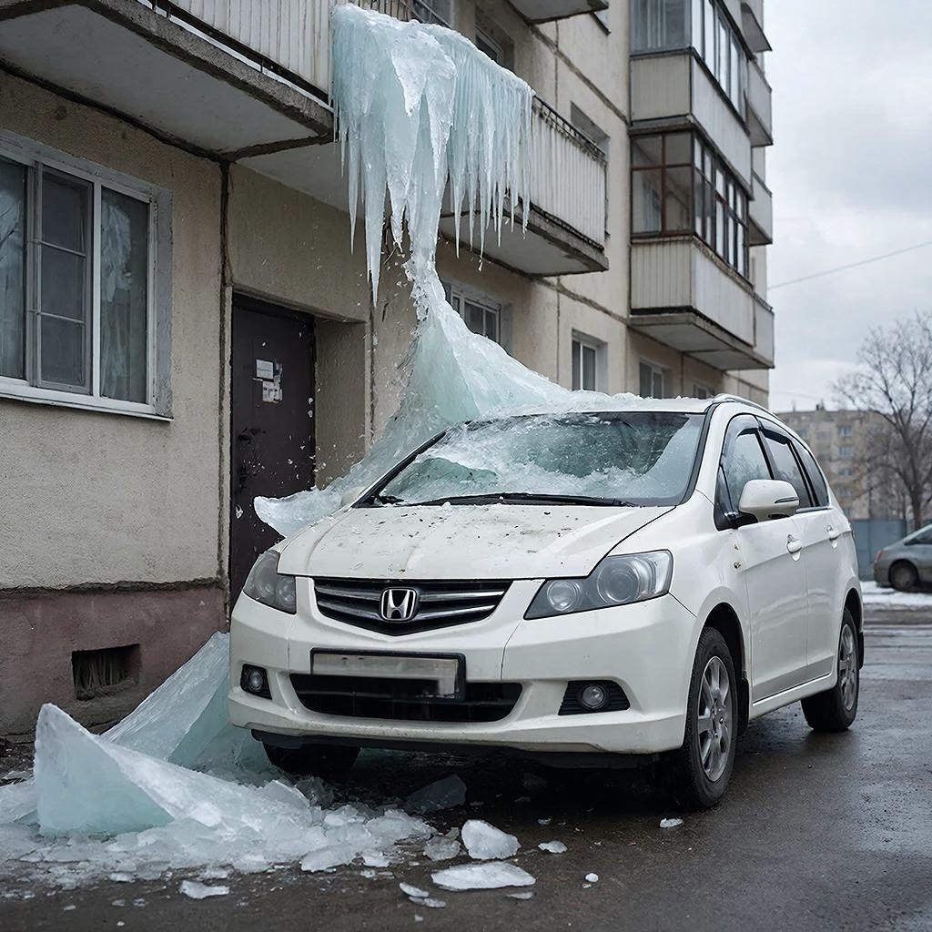 8 марта 2022 года с фасада балконов многоэтажки на припаркованный автомобиль Honda Stepwgn упала льдина. Повредились обе передних двери, крыша, лобовое стекло, капот, передний бампер, два передних крыла. Машину признали неремонтопригодной.