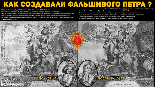 Если присмотреться, то явно видно, что Зубов СТЁР лицо того, кого изобразил Пикарт. А затем нарисовал того, кого было приказано изобразить. Смена головы - смена личности. И вот тут мы снова вспоминаем старый вопрос о голове Бронзового/Медного всадника. Да и не только.