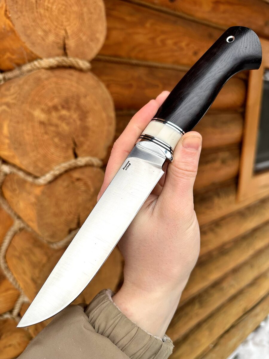 Разделочный нож "Засапожный" — выбор ценителей настоящего качества. 🔪 Материал клинка: кованая сталь Х12МФ — одна из лучших отечественных инструментальных сталей. ✨ Преимущества: - Высокая твёрдость (HRC 61-62) — клинок долго держит заточку, не тупится даже при активной работе. - Агрессивный рез — легко справляется с разделкой, строганием и точными манипуляциями. - Минимум ухода — идеален для охоты, рыбалки и походов. Рукоять: наборной чёрный граб — надёжно лежит в руке и отлично смотрится. 💰 Цена: ~10.750 ₽~ 9.440₽ 🛡️ Пожизненная гарантия — ручная работа, контроль на каждом этапе. 🔨 Опционально: кожаные формованные ножны из растительного дубления (+8 000 ₽) — для солидного подарка или личного пользования. Заказать просто: ✉️ Пишите: [@Nazarklinokbot](https://t.me/Nazarklinokbot) 📞 WhatsApp: [ +7 910 134-38-31](https://wa.me/79101343831) #ножи #ручнаяработа #X12MF #охота #КузницаНазарова #подарок #туризм #Засапожный