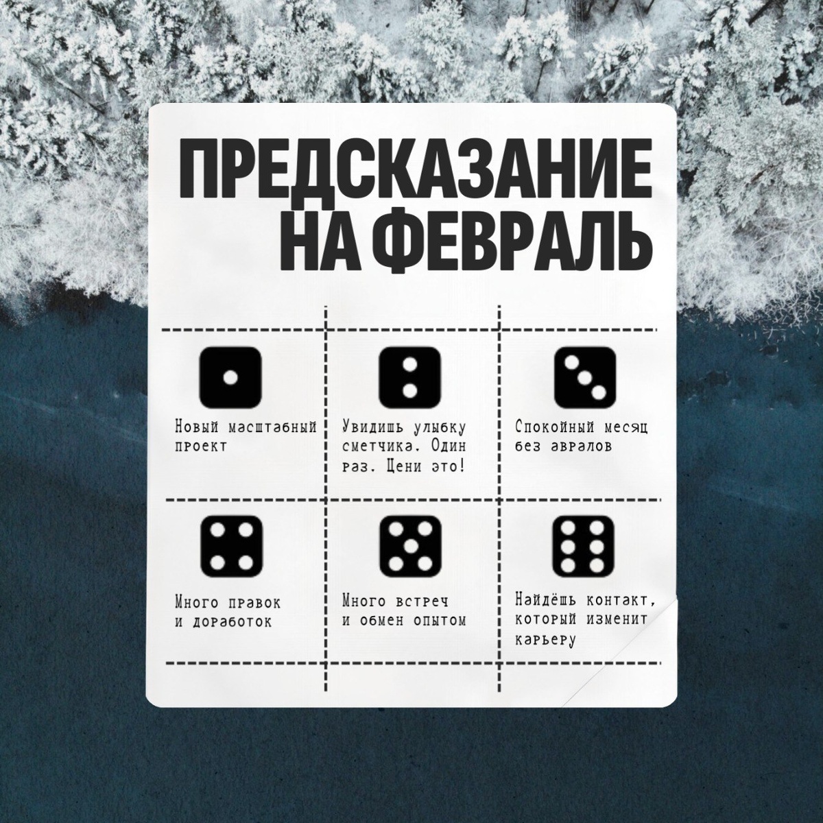 Февраль тот самый месяц, когда проекты уже в работе, а команда только нащупывает удобный ритм работы. Самое время узнать, каким он будет 😎 Кидай кубик в комментариях он подскажет, что ждёт в феврале
