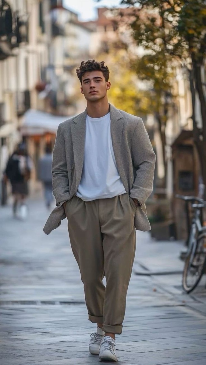 • Обувь: Чистые кеды в стиле ретро или лоферы дополняют образ, сохраняя баланс между спортом и классикой.