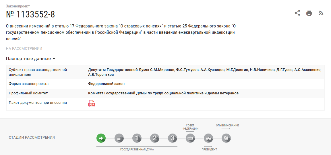 В пояснительной записке к новому законопроекту черным по белому написано: цель - перевести нас с ежегодной индексации на ежеквартальную. Речь идет о поправках сразу в два главных для нас закона: "О страховых пенсиях" и "О государственном пенсионном обеспечении".