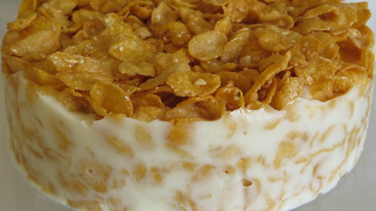 Торт МЕДОВЫЙ ХРУСТИК на ЗАВТРАК ВМЕСТО КАШИ! Это КРУТО ВКУСНО и ПОЛЕЗНО! Рецепт Торта БЕЗ ВЫПЕКАНИЯ в ДУХОВКЕ! Завтрак для детей и взрослых. Для Крема: Молоко - 500 мл Яйца - 2 шт Мёд - 2 столовые ложки Крахмал - 2 столовые Масло сливочное - 100 г Желатин - 1 столовая ложка. Для коржей - кукурузные хлопья Медовые. Марина Еникеева