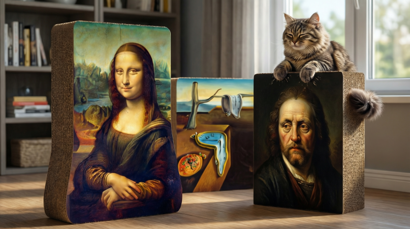 Когтеточки в виде шедевров мировой живописи тихо, но уверенно ворвались в российские маркетплейсы. Теперь Мона Лиза, «Сон» Дали и портреты Рембрандта могут украсить не только стены, но и зону для кошачьего маникюра. Ирония в том, что пушистые ценители искусства вовсе не задумываются о культурном наследии — они просто с удовольствием точат когти о полотна великих мастеров, превращая музеи в личные спа-салоны. И да, коты одобряют. Без сомнений, без критики — только практичность и эстетика в одном флаконе (точнее, в одном картонном шедевре). Теперь ваш питомец может одновременно поддерживать культурный уровень дома и держать когти в боевой готовности. А что ещё нужно для счастья? 😺🎨 #когтеточка #котыиискусство #дизайндляпитомцев #МонаЛиза #Дали #Рембрандт #кошкиндизайн #артдлякотов #пушистыемеценаты