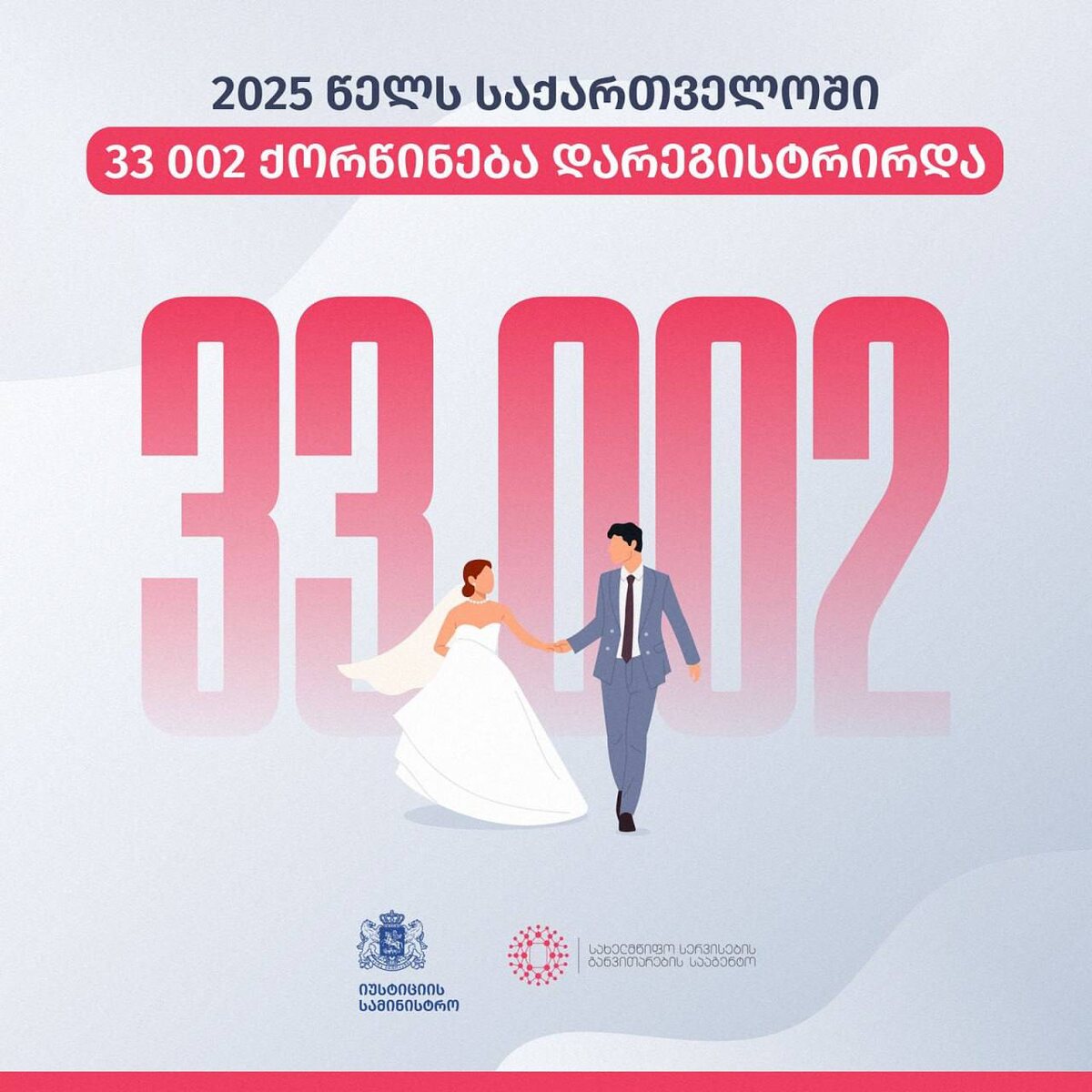 За 2025 год в Грузии было заключено 33 002 брака