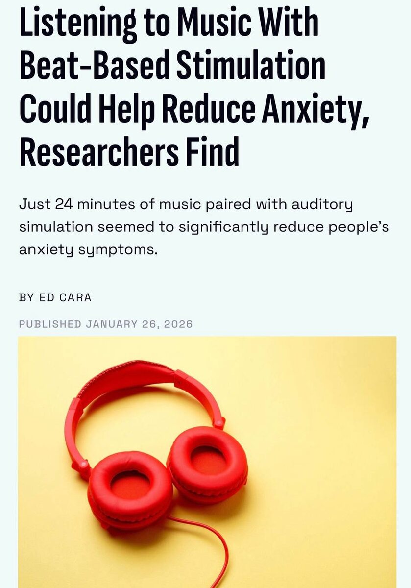 🔴Канадские и британские исследователи проверили гипотезу на 144 участниках, которые уже принимали препараты от тревоги. Часть из них слушала музыку с аудиальной стимуляцией, часть — розовый шум. 🔴В результате у музыкально группы тревожные симптомы заметно уменьшились 🔴Идеальный тайминг — около 24 минут. Дольше можно, но дополнительного вау-эффекта мозг уже не получает. Лучше всего зашли ритмичные жанры: рэп, хип-хоп, техно. 🔴Мощный бит переключает внимание, гасит внутренний хаос и возвращает ощущение контроля, но все же не заменяет терапию. Отправляй своим любителям рэпчика ❤️ CtrlAltDelights- подписаться