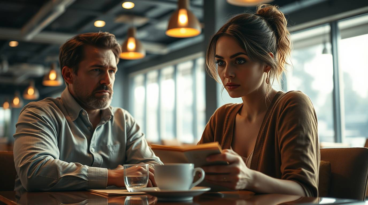 Перед Иваном — чашка остывающего кофе. Перед Кариной — нетронутый капучино. Меню лежало закрытым.