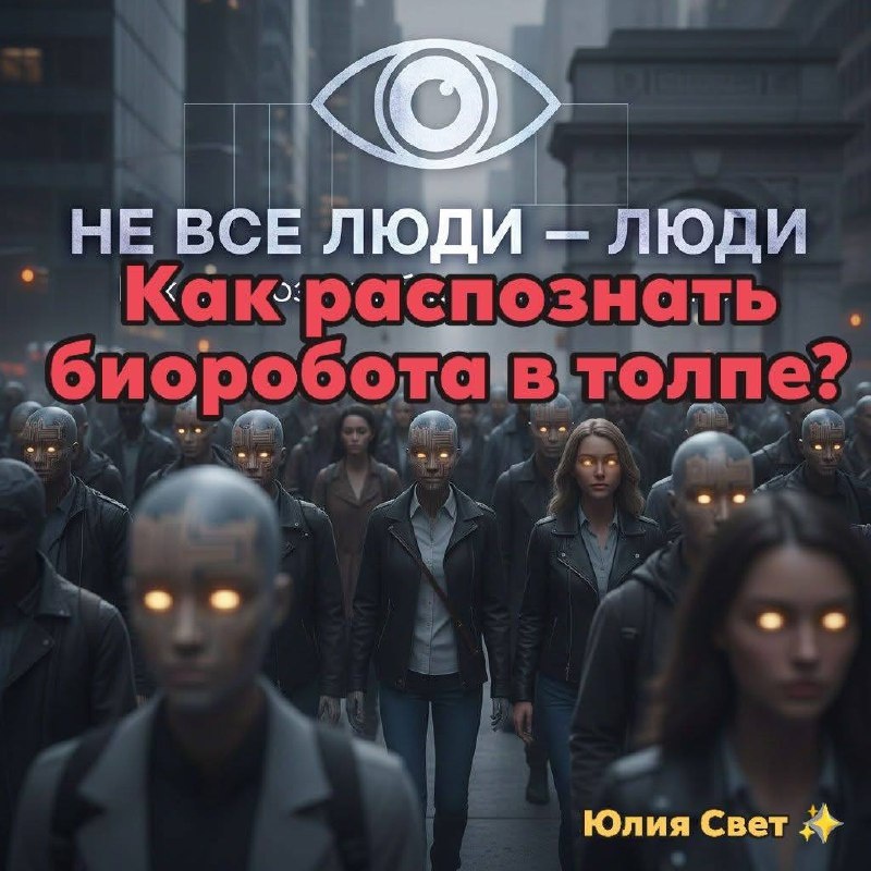 «нечеловечным»? Вроде бы люди те же, но что-то в них неуловимо изменилось. Мы привыкли думать, что каждое тело на этой планете наделено душой, но всё чаще реальность доказывает обратное. Добро пожаловать в эру биороботов. 🤖 КТО ОНИ ТАКИЕ? Это не киборги из голливудских фильмов с проводами под кожей. Внешне это абсолютно обычные люди: они ходят на работу, покупают кофе, ведут соцсети и даже поддерживают светские беседы. Но есть одна деталь — внутри пустота. Это биологические оболочки, лишенные искры творца. Они живут по программам, инстинктам или внешним командам, не имея того самого «внутреннего компаса», который мы называем душой. Главный маркер — СОВЕСТЬ!!! КАК ОТЛИЧИТЬ ЧЕЛОВЕКА ОТ КАЧЕСТВЕННОЙ ИМИТАЦИИ? Проверка проходит не по паспорту, а по наличию совести. - Отсутствие эмпатии: Биоробот не способен сопереживать. Он может имитировать сочувствие, если так велит этикет, но он никогда не почувствует вашу боль как свою. - Беспринципность: Там, где человек с душой остан
