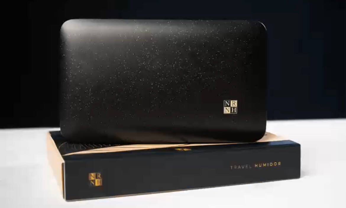Бренд NRNH представил новый дорожный хьюмидор, вмещающий до 5 сигар. ➙ Корпус — матовый черный цвет с золотыми акцентами ➙ Герметичное закрытие — магнитный замок, сохраняющий стабильный микроклимат ➙ Контроль влажности — поддерживает стабильные 69% ➙ Автономность — сохраняет до двух месяцев увлажнения при стандартном использовании ➙ Защита — усиленная внутренняя конструкция для безопасной транспортировки сигар. #новостимирасигар