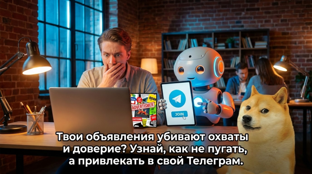 Ты наверняка видел эти объявления. Висит где-нибудь в чате, на Авито, в сторис, в районе доски у лифта: «Подпишись на наш Телеграм!!! Там акции!!!» И рядом три восклицательных знака, как следы паники. Люди не переходят. Не потому что они «не твоя ЦА». А потому что объявление звучит как крик продавца на вокзале: шумно, подозрительно и без причины.