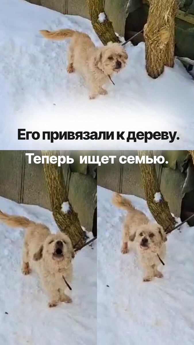 «Тут собака. Она просто живёт у дерева. Привязана. На морозе».