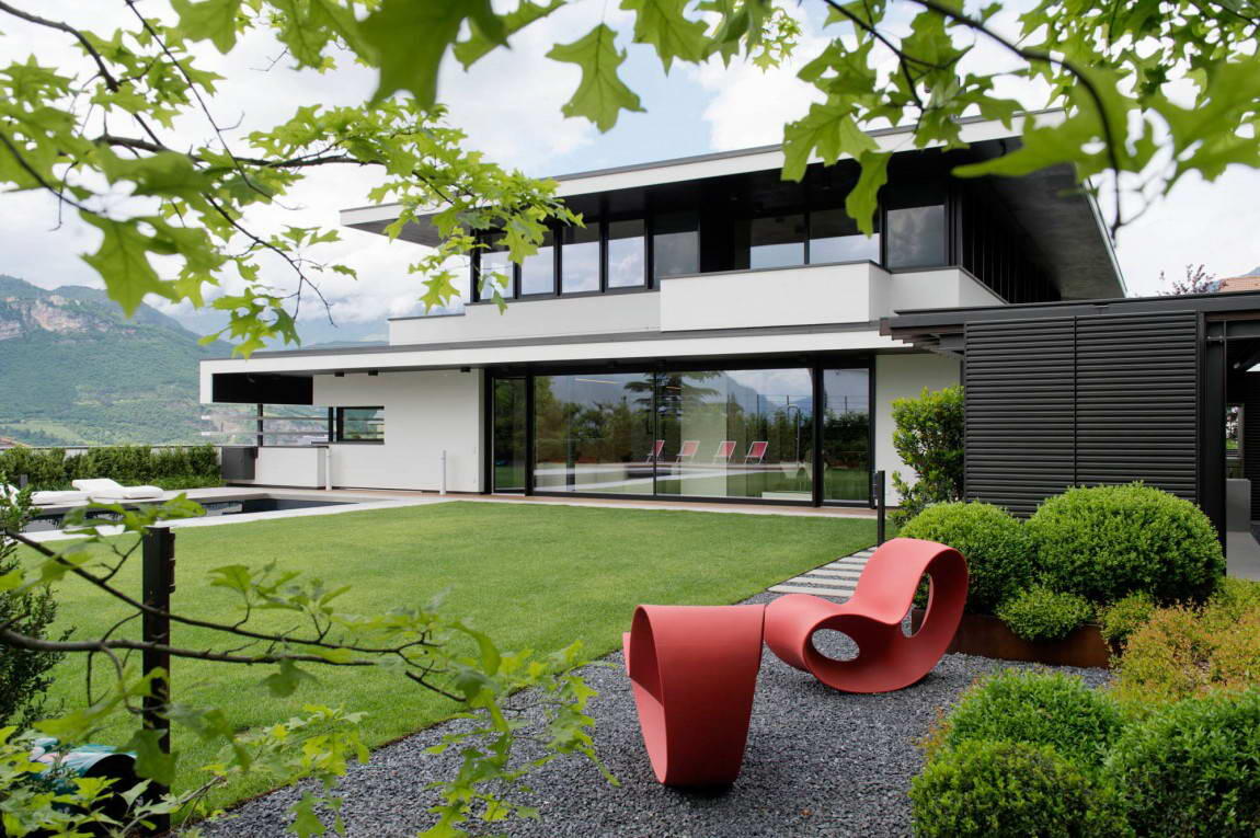 Друзья, по воскресеньям у нас частная архитектура Италии. Сегодня ещё 5 совершенно разных домов - посмотрите! Архитектура Италии — это прежде всего традиции, современность и итальянский дизайн. В нашей коллекции итальянской частной архитектуры есть дома и квартиры самых разных стилей, стоимости и материалов, здесь есть новые объекты и старые, прошедшие вдумчивую реконструкцию, большие и маленькие. Часть 17. Предыдущая часть здесь. Эта роскошная загородная вилла расположена на слегка наклонном участке в небольшом городке в 50 милях от Флоренции. Фрагментация поверхности фасадов и тонкие бетонные линии придают зданию сложную композиционную схему и выражают предпочтения заказчика прямым углам и плоским поверхностям. По словам авторов, «мы постепенно выполняли «деконструирование» объемов, пытаясь получить стройную архитектуру с более легкими элементами снаружи». В результате получился образ, напоминающий местами «Дом Шрёдер«, местами школу Баухауз. Заглублённый внутренний двор засажен высо
