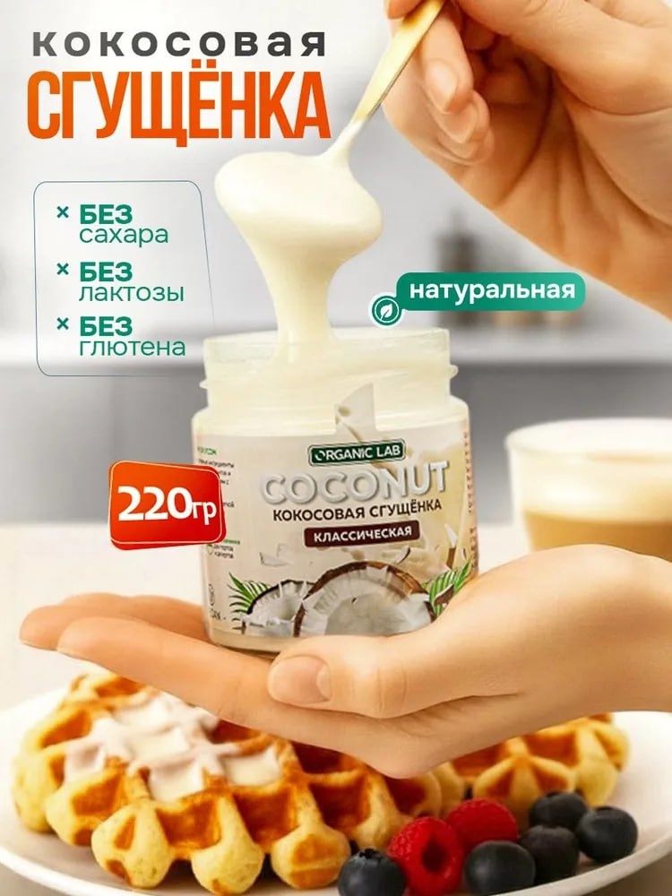 Кокосовая сгущенка без сахара классическая ORGANIC LAB топпинг, пп сладости без лактозы, веган десерт, 220 г