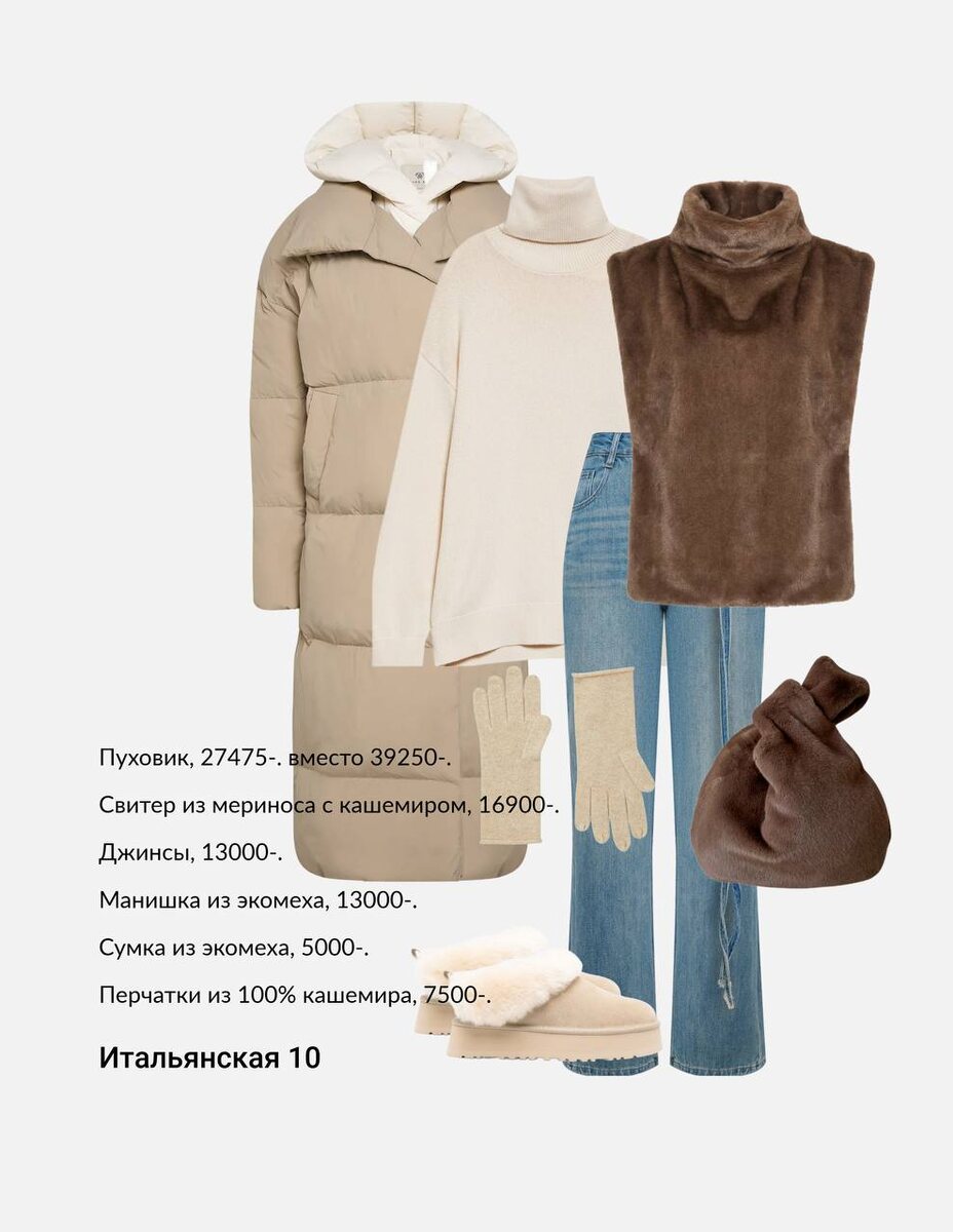 ! Необычно сурова в этом году зима, поэтому пока продолжим с теплыми образами — сейчас в коллекциях остались только бестселлеры, не пропустили ли вы их? Пуховик с капюшоном (хит!), 27475₽ вместо 39250₽ остались последние три штуки в размере M-L ( XS-S распроданы) по адресам: · Итальянская 10 · Большой пр ПС 31 · Марсово поле 7 Манишка из эконорки (хит!), 13000₽ остались последние 3 шт на Итальянской 10 и Большом пр ПС 31 Сумка в том же мехе (хит!), 5000₽ · Итальянская 10 · Большой пр ПС 31 Свитер с кашемиром, (хит!) 16900₽ премиальный состав: 40% меринос, 20% кашемир, 20% вискоза, 20% нейлон Удобно, модель представлена по всем адресам! Джинсы, 13000₽ · Итальянская 10 · Большой пр ПС 31 Перчатки из 100% кашемира, 7500₽ · Итальянская 10 · Большой пр ПС 31 _____________ Весь образ целиком, как видно из текста, можно примерить в Maker Select на Итальянской 10 резерв для примерки и другие вопросы по моделям в MakerBot