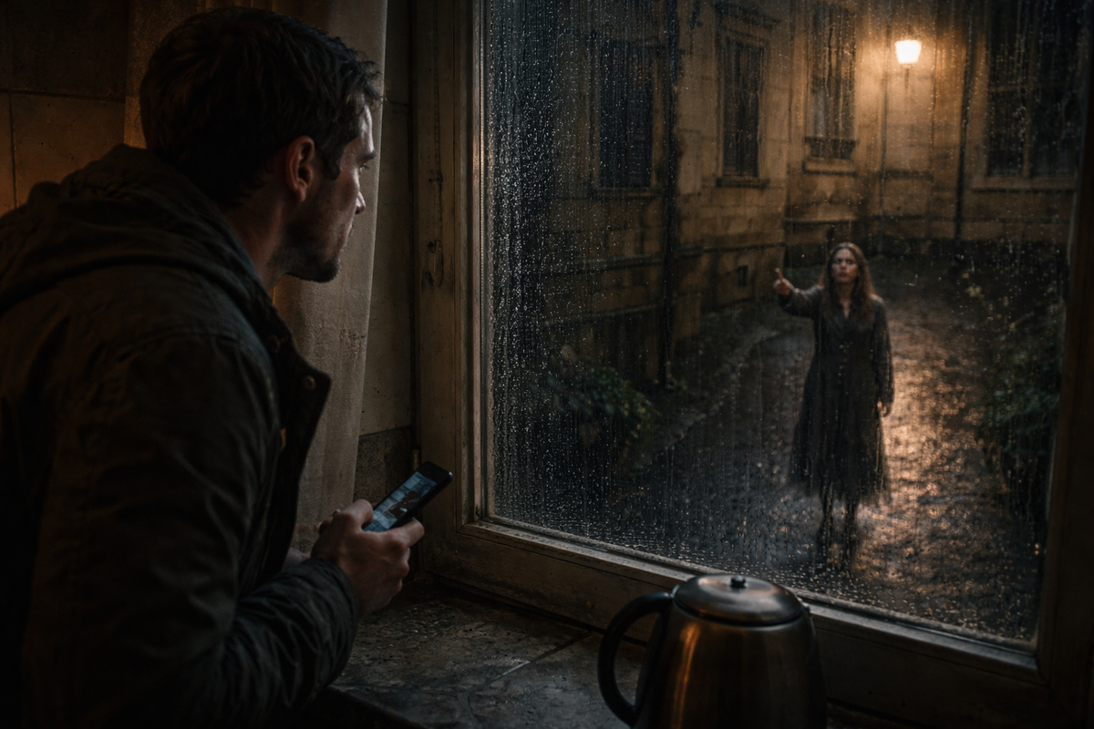 Она стояла во дворе. Под дождём. Без зонта, без плаща. Просто стояла и смотрела вверх — прямо на его окно.