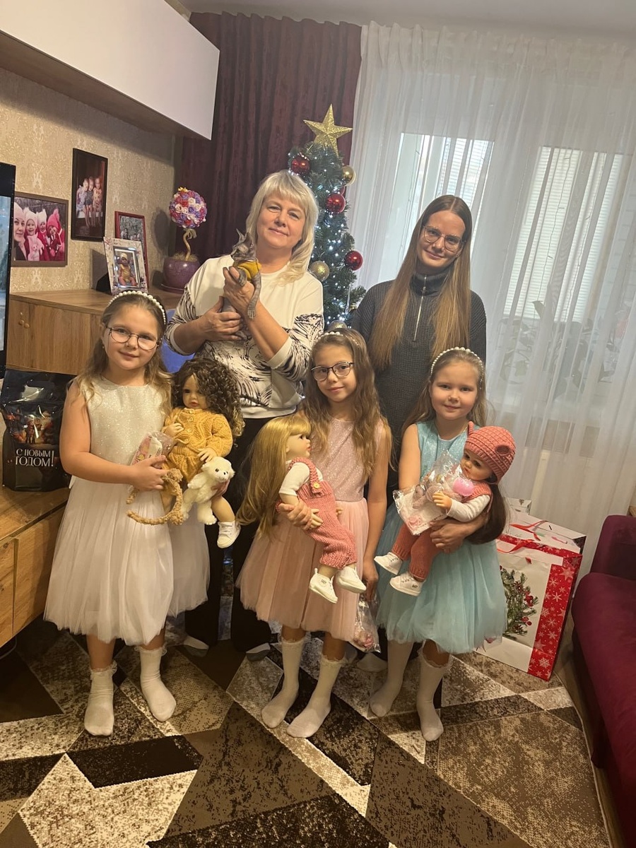 : Здравствуйте! Хочу выразить благодарность отзывчивой ,доброй и замечательной семье Акишкиных, за то что исполнили мечту моих дочек !🤗 на кануне нового года Милая Екатерина и ее мама пришли и поздравили девочек с Новым годом 🎉 Подарили им не только кукол , но и искреннего тепла и радости ❤️ Настроения и веры в чудеса 🎄 С Новым годом 🌲 Пусть ваши сердца всегда будут наполнены счастьем , любовью,нежностью и добротой!!!🙏 Спасибо Ёлке желаний за возможность быть счастливыми!🌲 🌟Исполнить желание на сайте елкажеланий.рф #ЁлкаПервых #ЁлкаЖеланий2025