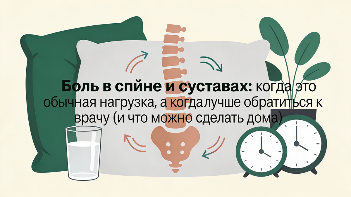 Боль в пояснице, коленях, плечах стала для многих чуть ли не нормой: "наклонился — продуло", "посидел неудобно — спину потянул", "потренировался — суставы ломят". Иногда это действительно банальная перегрузка, а иногда организм пытается сказать, что ему нужна помощь. Чеклист на диагностику самому себе: Вероятно, обычная перегрузка, если: Лучше обратиться поскорее, если: Обратись без откладывания, если: Материал информационный и не заменяет консультацию врача.