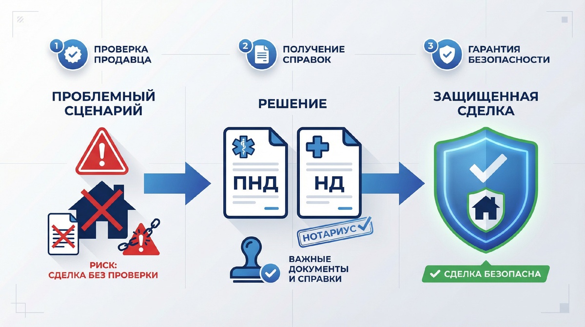 ? 🤔 А через три месяца родственники заявляют, что он был невменяем. Сделку признают недействительной, квартиру отберут. Справки ПНД и НД — документы из психоневрологического и наркологического диспансеров. Подтверждают, что продавец не состоит на учёте. Формально не обязательны, но помогают защитить сделку. Почему важны? Если продавец был недееспособен, суд может признать договор недействительным. Справки — ваша страховка. Нюанс: справка показывает только факт учёта. Если человек не обращался к врачам — проблемы не выявит. В сложных случаях лучше пригласить психиатра перед сделкой. 💬 Не уверены? Оставьте заявку на консультацию по ссылке в шапке! #юридическийликбез #безопаснаясделка