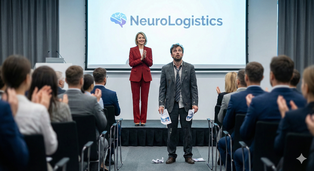 Я стою на сцене конференции "TechWeek" в Москве. На мне красный брючный костюм (да, я полюбила красный). Я похудела на 10 кг — не ради Влада, а ради здоровья, и спорт стал моим хобби. За моей спиной — логотип "NeuroLogistics". Моего подразделения в холдинге Громова.