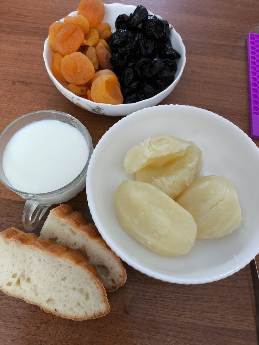 Обед хлебушек несвежий картошечка варёная с растительным маслом и кефир Всем приятного аппетита