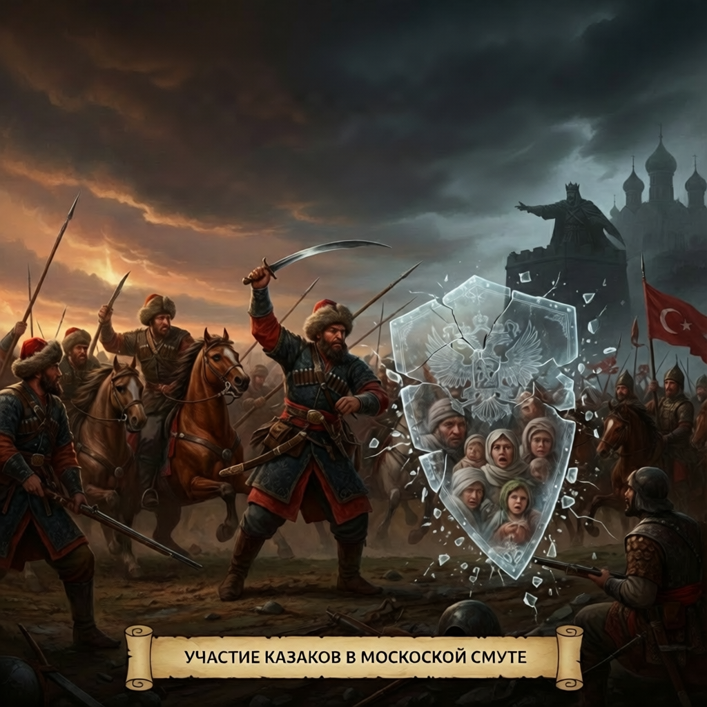«Казак — что голубь: куда захочет, туда и полетит, но верность дому в сердце сохранит». История России — это не только летопись побед, но и запутанный лабиринт роковых ошибок. Самый темный его участок — Смутное время. Историки старой школы часто пытаются найти «козла отпущения», чтобы затуманить неспособность тогдашней элиты мыслить здраво. И этим «стрелочником» нередко назначают казачество. Именитый историк Иван Забелин, не скрывая антипатии, писал, что казаки если и не «сочинили» Смуту, то раздули её пожар, разоряя крестьян. Но давайте будем честными: разве казаки управляли государством? Разве они закрепощали народ до состояния «живого имущества»? Сегодня мы разберем, почему участие казаков в Московской Смуте было не бунтом ради хаоса, а отчаянной попыткой выжить и сохранить Православный мир. К концу XVI века Москва превратилась в жесткую вертикаль. Борис Годунов, взошедший на престол, завершил процесс закрепощения: крестьяне стали «крещеной собственностью». Но самодержцу этого было