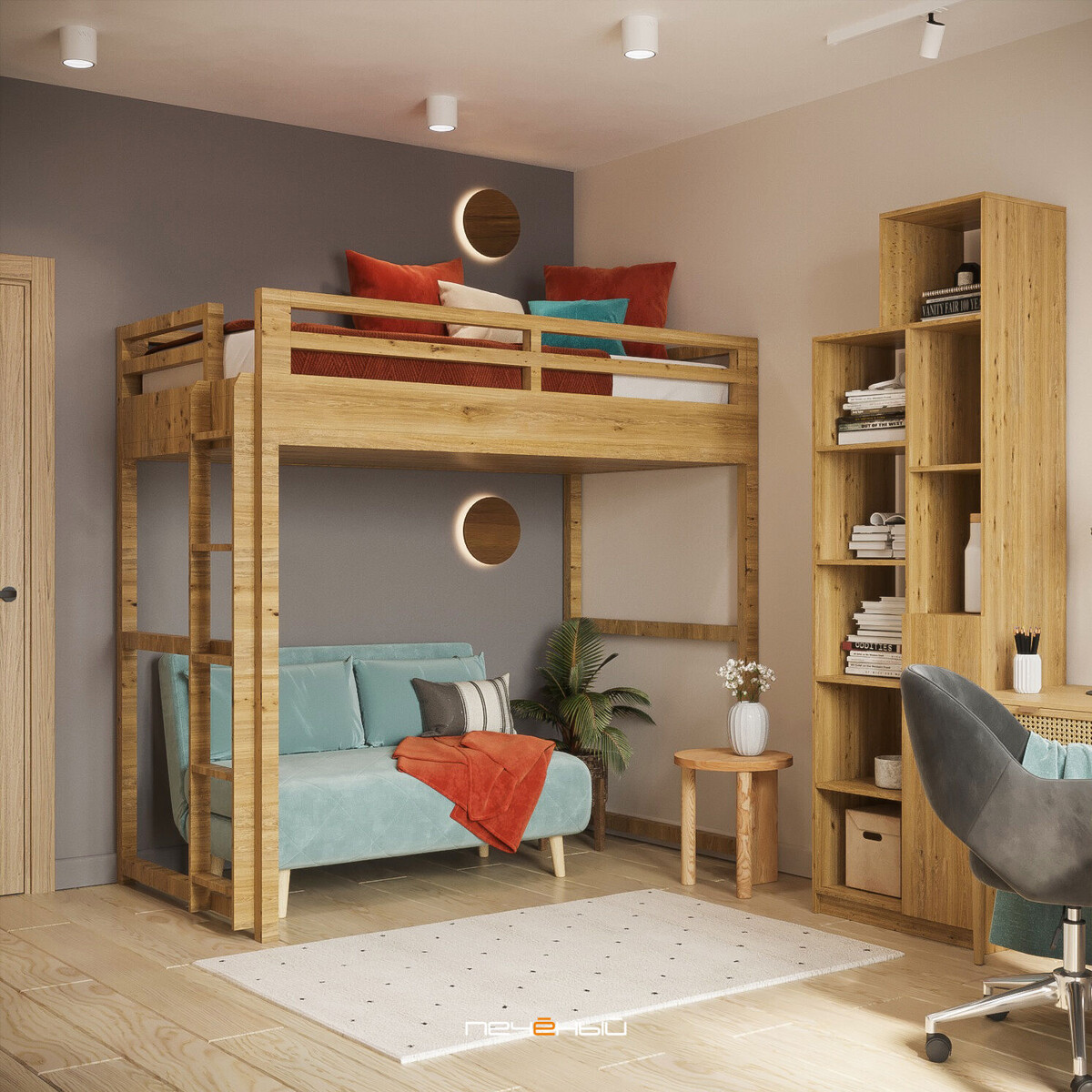 Обычно мы закладываем удобную кровать с лаконичным изголовьем, закрытые системы хранения, открытые полки на уровне роста ребёнка и рабочее место с хорошим естественным светом. Такая схема отлично подходит для новостроек с разным метражом.