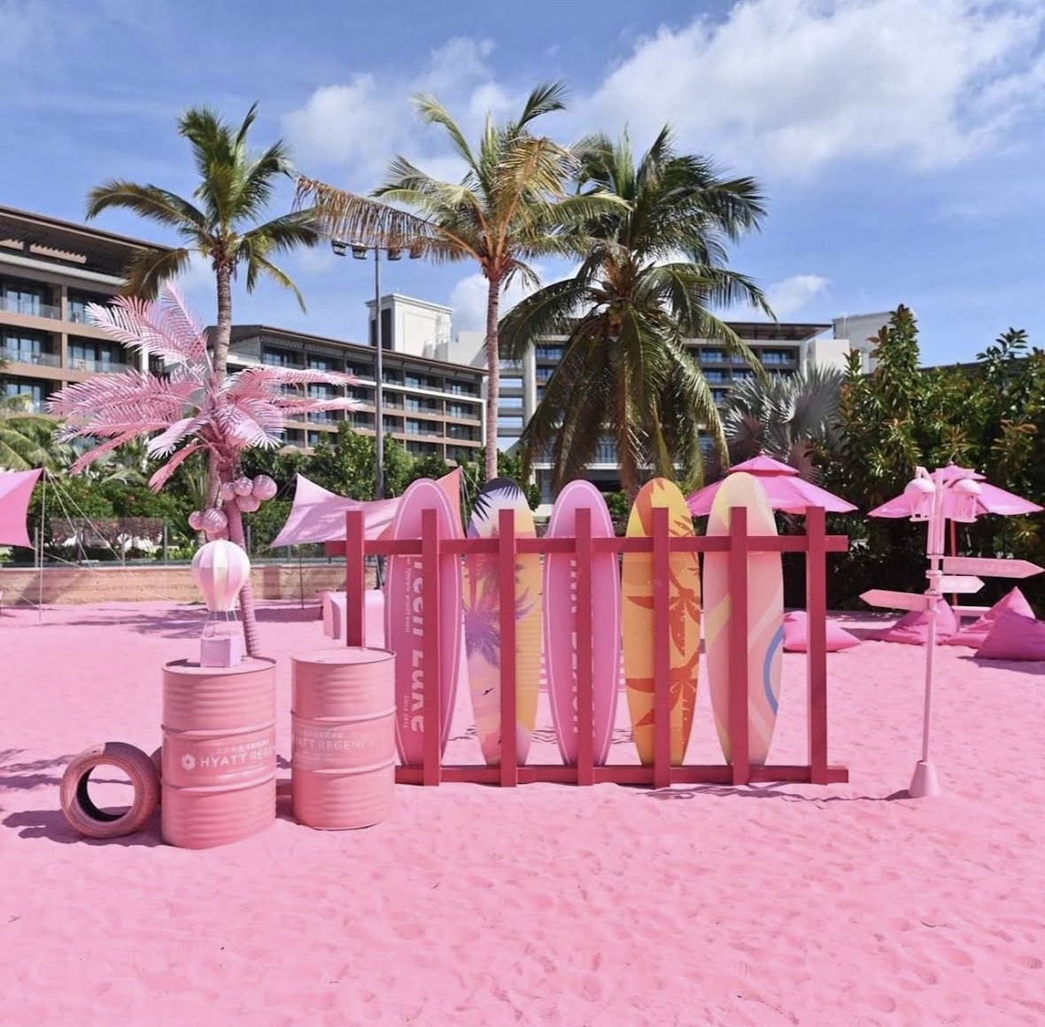 Розовый пляж расположен на территории отеля Hyatt Regency Sanya Tianly Bay, в городе Санья.