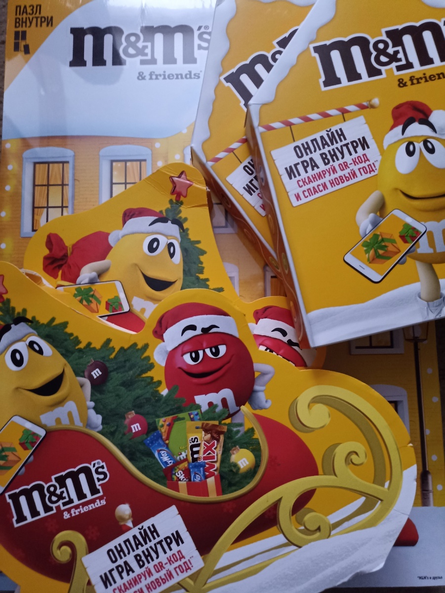 Срочно в выпуск как говорится! Если у Вас ряжом есть Магнит, рекомендую скорее зайти и посмотреть, не завалялись ли на полке Новогодние!! наборы m&m's Сейчас на них акция , они по 49.99 рублей Единственный момент, надо умудриться найти их на полках. Если удастся найти отпишитесь, порадуемся за вас.