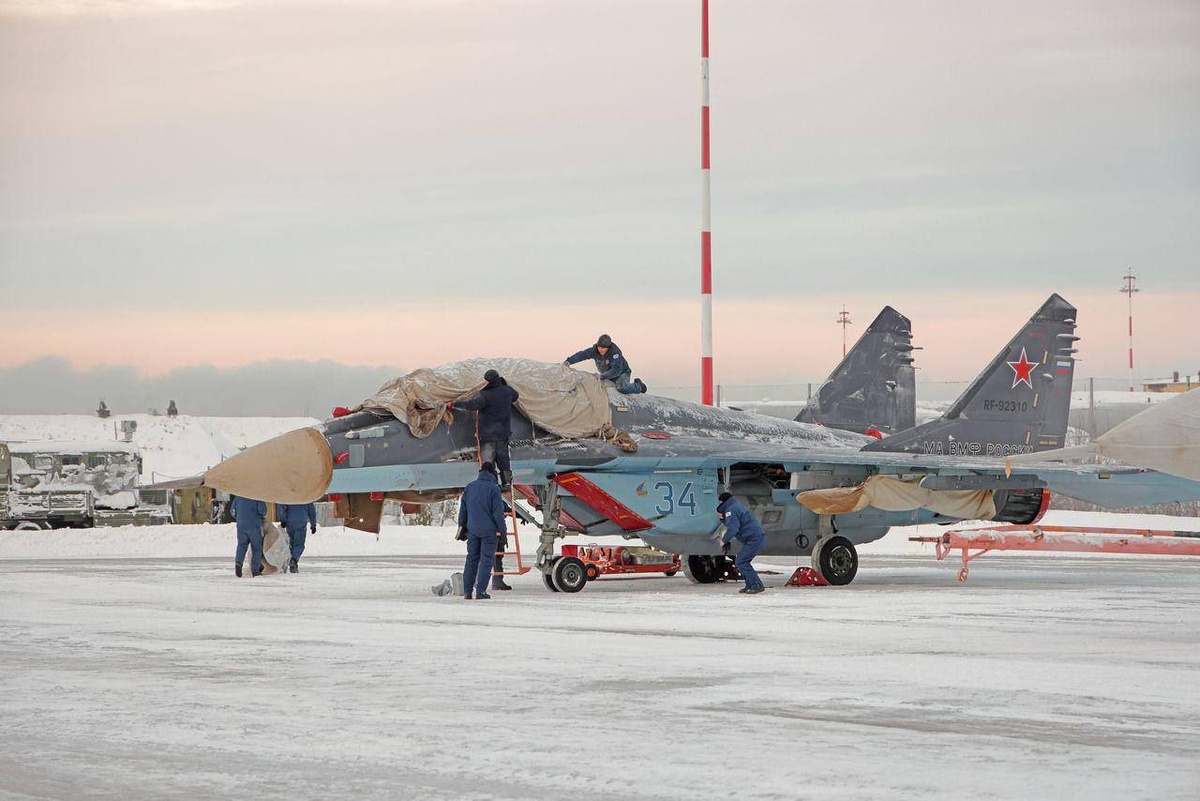 📷❗️Члены инженерно-технического состава 100-го отдельного корабельного авиаполка Северного флота зачехляют истребитель МиГ-29К (борт «34