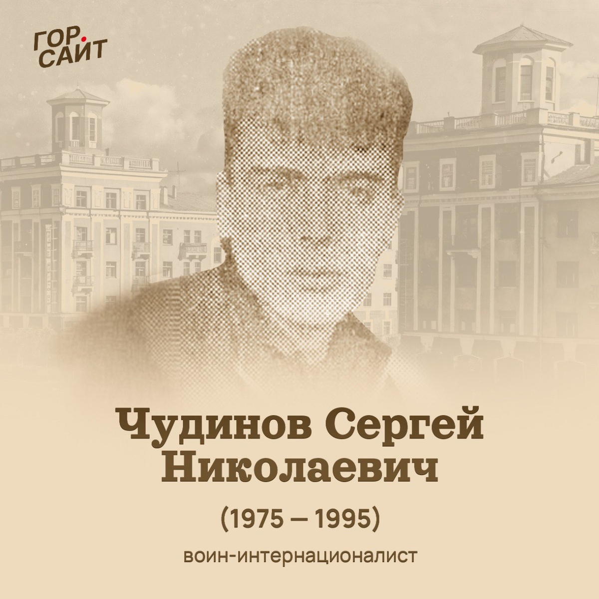 Сергей Чудинов — воин-интернационалист Сергей Чудинов родился 14 ноября 1975 года в Полевском. Учился в ПТУ № 47, где освоил профессию, а затем работал на Северском трубном заводе, увлекался техникой. После окончания учебы 25 декабря 1993 года он был призван в армию. Служил в воинской части 09332 СКВО в Чеченской республике. Погиб 1 января 1995 года, выполняя свой долг. 1 мая того же года его похоронили на северском кладбище. За проявленное мужество Сергею Чудинову посмертно присвоили орден Мужества. В 2013 году в здании Полевского многопрофильного техникума имени В.И. Назарова установили мемориальную доску. На ней высечены слова: «Чудинов Сергей Николаевич (14.11.1975 – 01.01.1995) — погиб при исполнении воинского долга в Чечне. Награжден орденом Мужества».