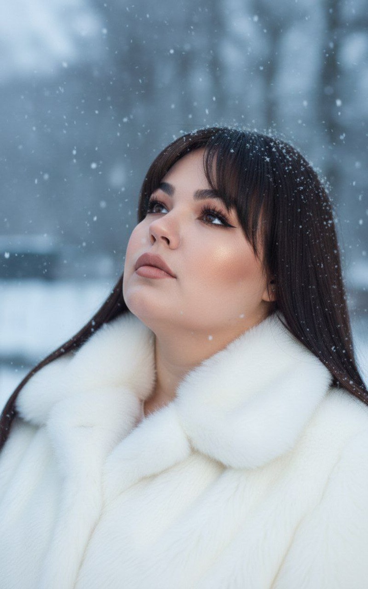 😀Выбираем "нейросети" 😀Нажимаем "Nano Banana" 😀Нажимаем "Nano Banana Pro" 😀Прикрепляем через скрепку свое фото и выбранный промпт 😀Наслаждаемся результатом🫶 Создай фото не меняя черты лица и цвет волос.Зимняя студийная/уличная съемка: женщина в пушистой белой шубе, длинные прямые тёмные волосы, челка-шторка, девушка смотрит вверх на падающий снег, мягкое холодное освещение. Макияж: безупречный матовый тон с лёгким контурингом и персиково-бронзовым хайлайтером на скулах; дымчатые глаза в коричнево-бронзовой палитре с тонкой чёрной стрелкой и длинными разделёнными ресницами; аккуратные, естественно густые брови; нежные румяна и бархатистая нюдово-розовая помада. #зимние@annapromtii20 #портретные@annapromtii20