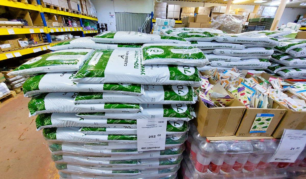 Этот товар, без всяких раздумий, сразу приобрел популярность в нашем Светофоре - Почвогрунт универсальный. Содержит биогумус и природный биофунгицид. Оценят почвогрунт не только дачники и садоводы. Такой грунт подходит для большинства видов садовых и комнатных растений. Объем 70л по цене 252 рублей.