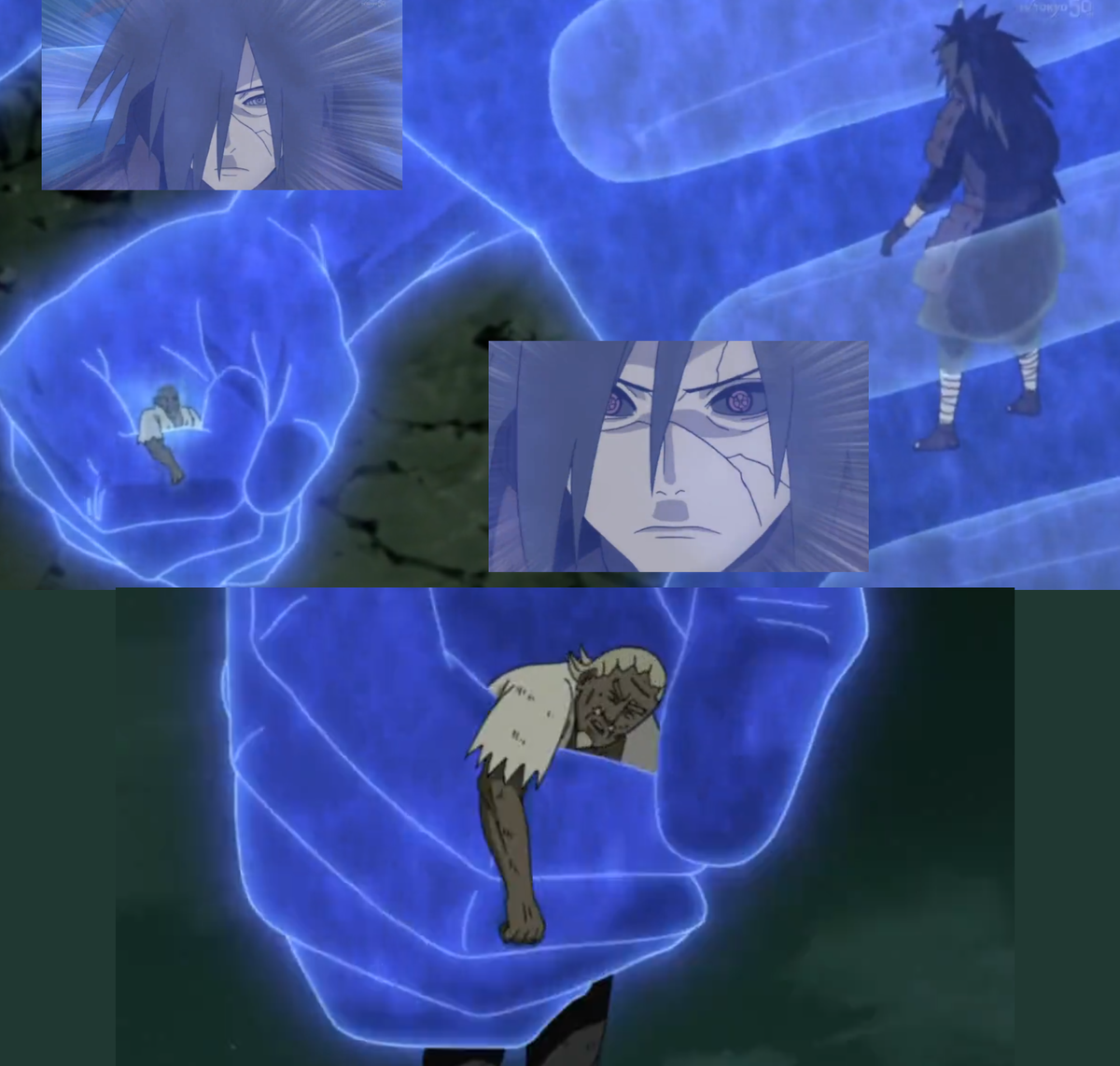 - Райкаге - физически держит атаки Сусаноо, но его максимум - НЕ быть раздавленным. По сути, ничего не может противопоставить защищённому Мадаре.