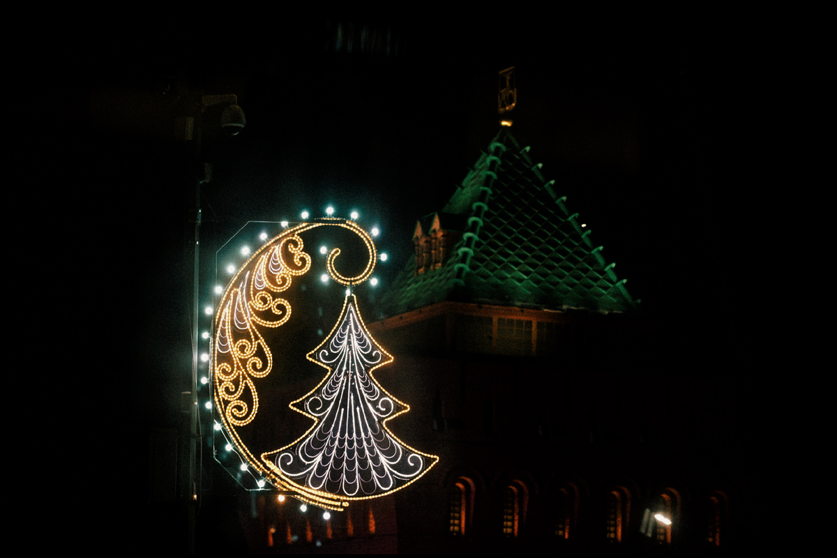Здравствуйте! Меня зовут Миша и я тормоз... С этих слов стоило начать, потому что совершенно забыл о просьбе читателей показать как украшают к Новому Году Нижний Новгород, хотя поездка туда уже начала обрастать мхом. Однако лучше поздно, чем никогда. Поэтому спешу исправиться и покажу снятое. Сразу хочу оговориться, снять именно украшений города удалось немного, так как гуляния по городу происходили все больше в ебе… по маленьким улочкам, но несколько фотографий все же сделал. Естественно, Нижний не Москва, и тут лампочки со спутника не очень видны. Даже на главных улицах, около кремля, украшения есть, но не бьют по глазам. Скорее их можно назвать оптимальным минимумом. Вроде как красиво, но еще не по-собяниновски. Дальше отправляемся в Заповедные Кварталы. Тут тоже можно было найти немного новогодних украшений. Остальные же улочки были их лишены, либо украшения были настолько грустными и одинокими, что я их даже не снимал. В плане украшения города к Новому Году, не устану приводить